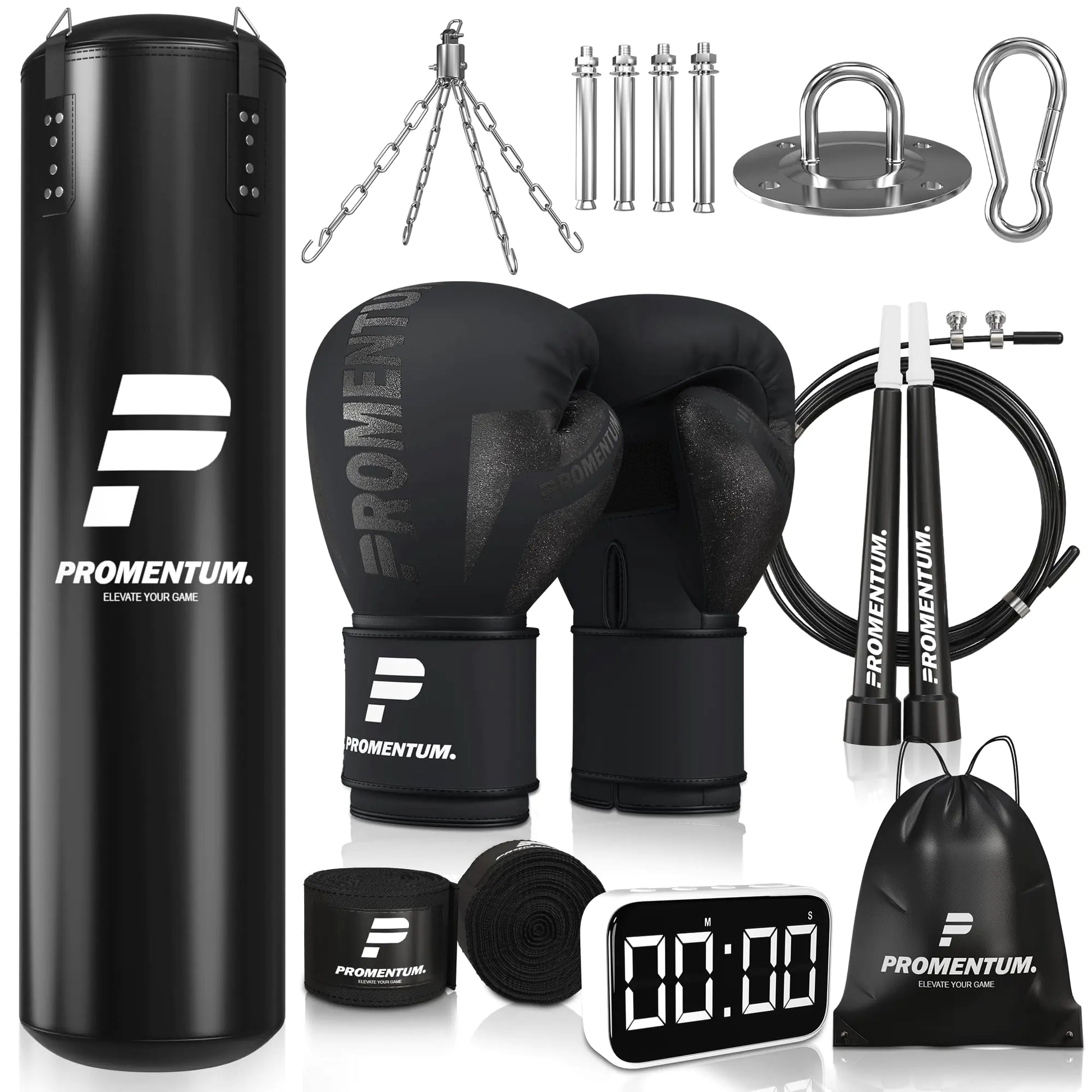 Enhance Your Training Experience: Jumpstart your fitness journey with our Promentum Punching Bag Hanging Kit. Specifically designed for adults, this kit includes an innovative training timer to keep track of your sessions and measure progress effectively.