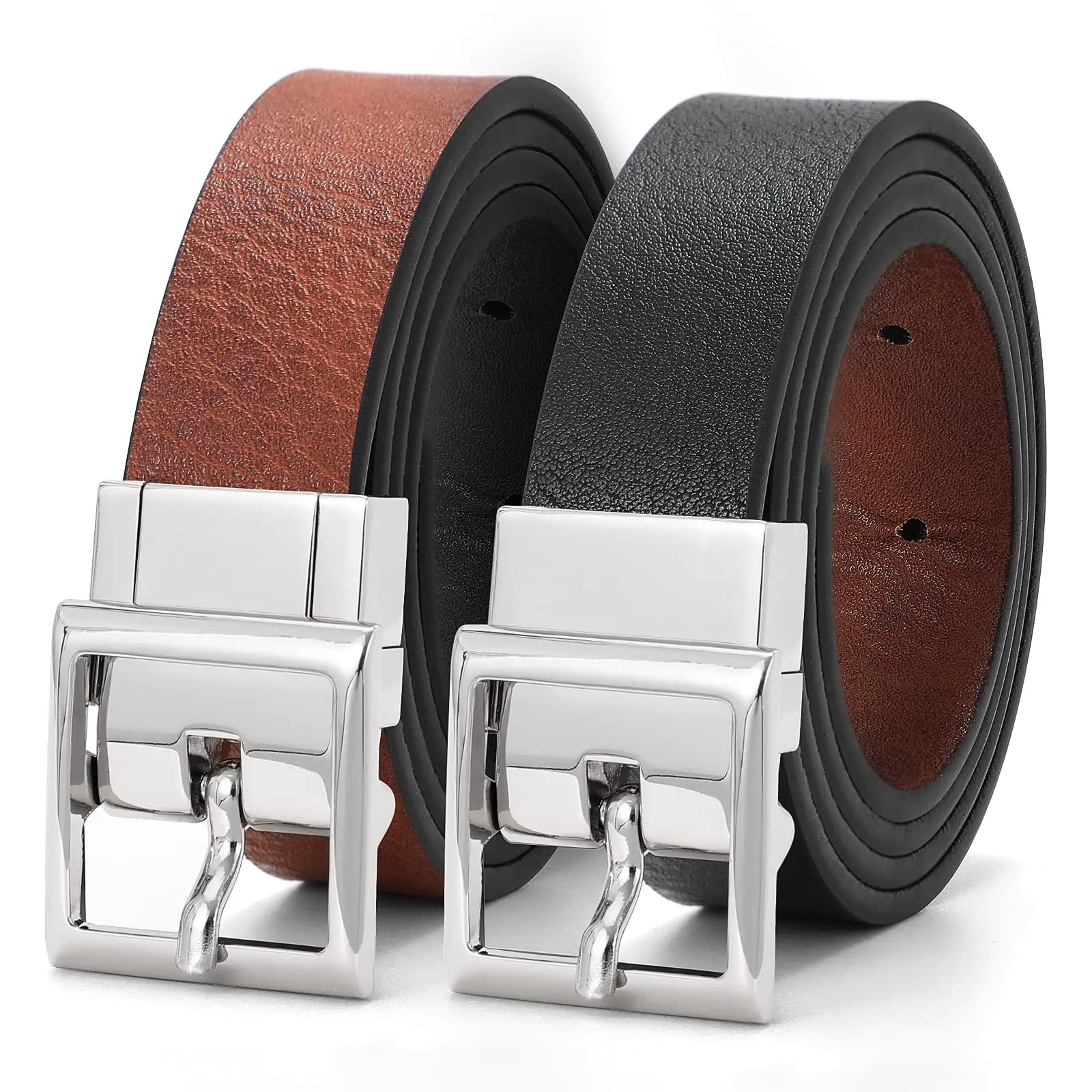 Dual-Color Reversible Design: Offers two stylish color options in one belt—black and coffee. Easily reversible with a simple twist of the buckle, making it a versatile accessory for any outfit.