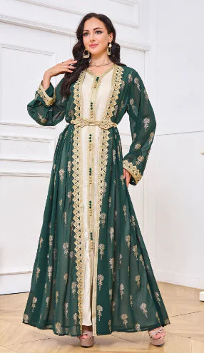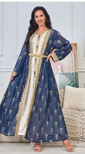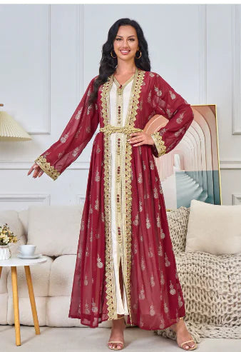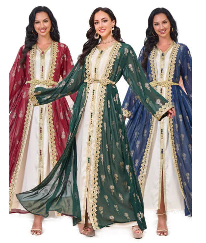 Discover sophistication with our Women's Arabic Embroidered Cardigan Vest Two-piece Set Dress, featuring a long skirt and a beautifully embroidered cardigan vest. This luxurious set is made from high-quality polyester and combines comfort with elegance to enhance your wardrobe for any occasion.