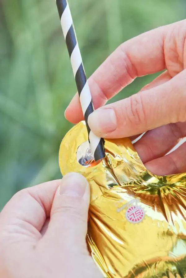 - TO INFLATE: Insert the straw in the flap UNDERNEATH the inner lining flap. Here is a link to a video tutorial. Inflate balloons using a pump, or you can use any strong straw to inflate with air! We don't recommend using helium with these balloons as they are too heavy to float.