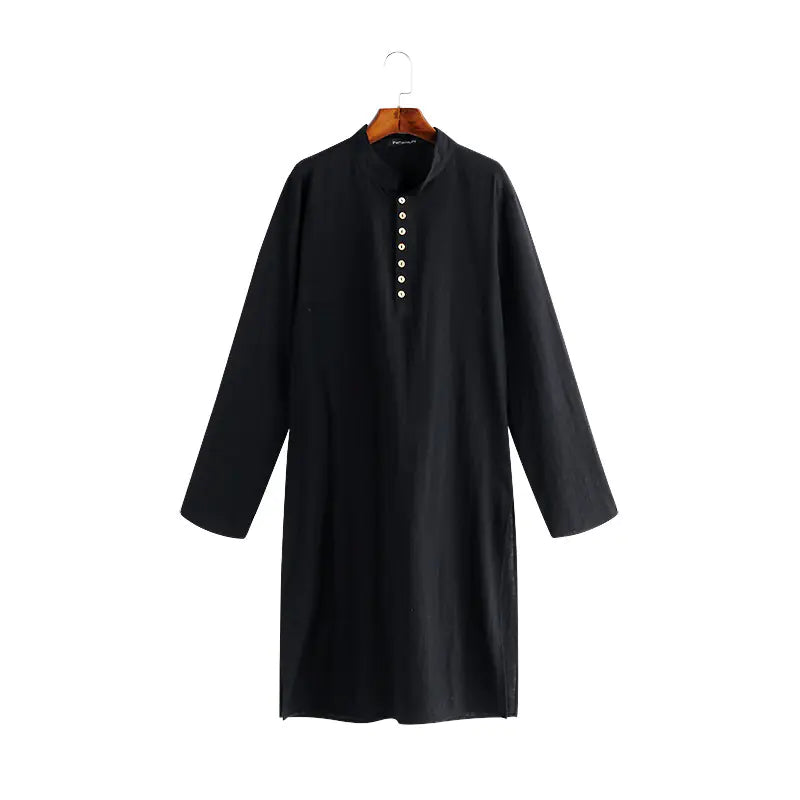 Elevate your wardrobe with our Arabic Style Fashion Simple Long Men's Shirt, a perfect blend of tradition and modernity. Designed specifically for the contemporary Muslim man, this Muslim robe is not just a piece of clothing, but a statement of style and comfort.