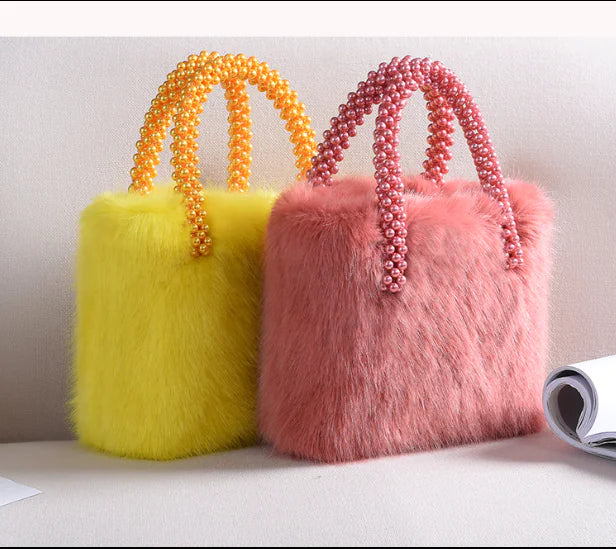Elevate your style with our exquisite plush handbag, featuring a stunning pearl handle and luxurious faux fur. Perfect for daily wear, this chic bag combines elegance and practicality, making it an essential addition to your wardrobe. Measuring at 24*28*3cm, it's designed to complement any outfit while providing ample space for your essentials.