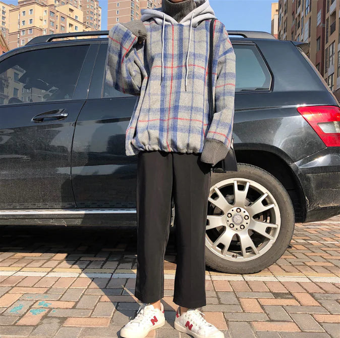 Elevate your casual wardrobe with our loose-fit plaid high-neck hoodie, designed for those who value both comfort and style. Crafted from high-quality polyester fiber, this hoodie promises warmth and durability, making it the perfect choice for chilly days.