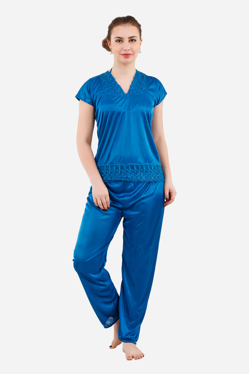 Romaisa Women's Satin Solid Blue Nightwear Set ( Pack of 6 )