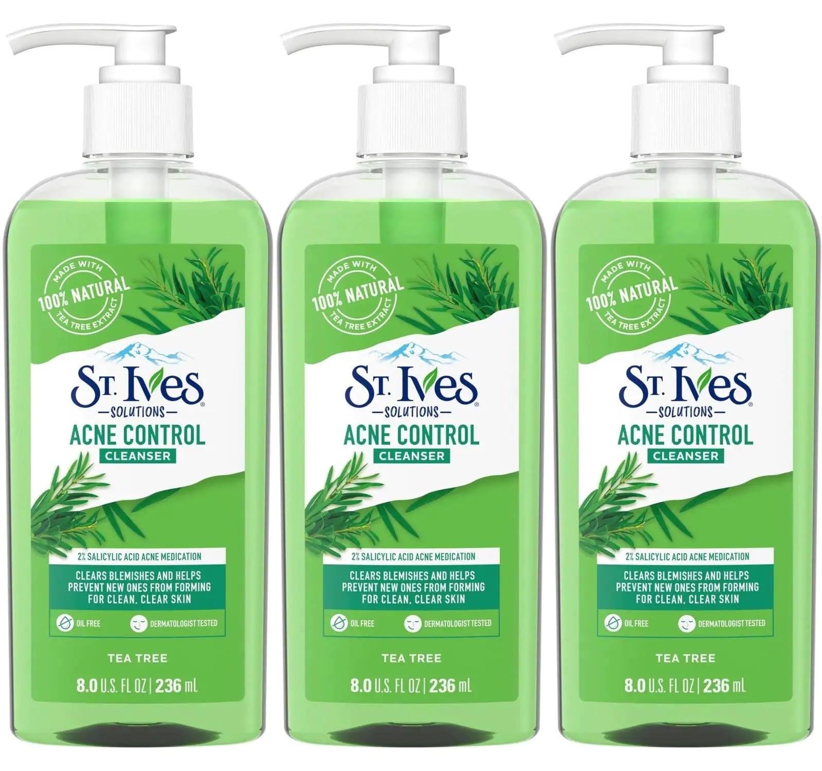 St. Ives Acne Control Cleanser with Salicylic Acid & Tea Tree 8oz - 3 Pack