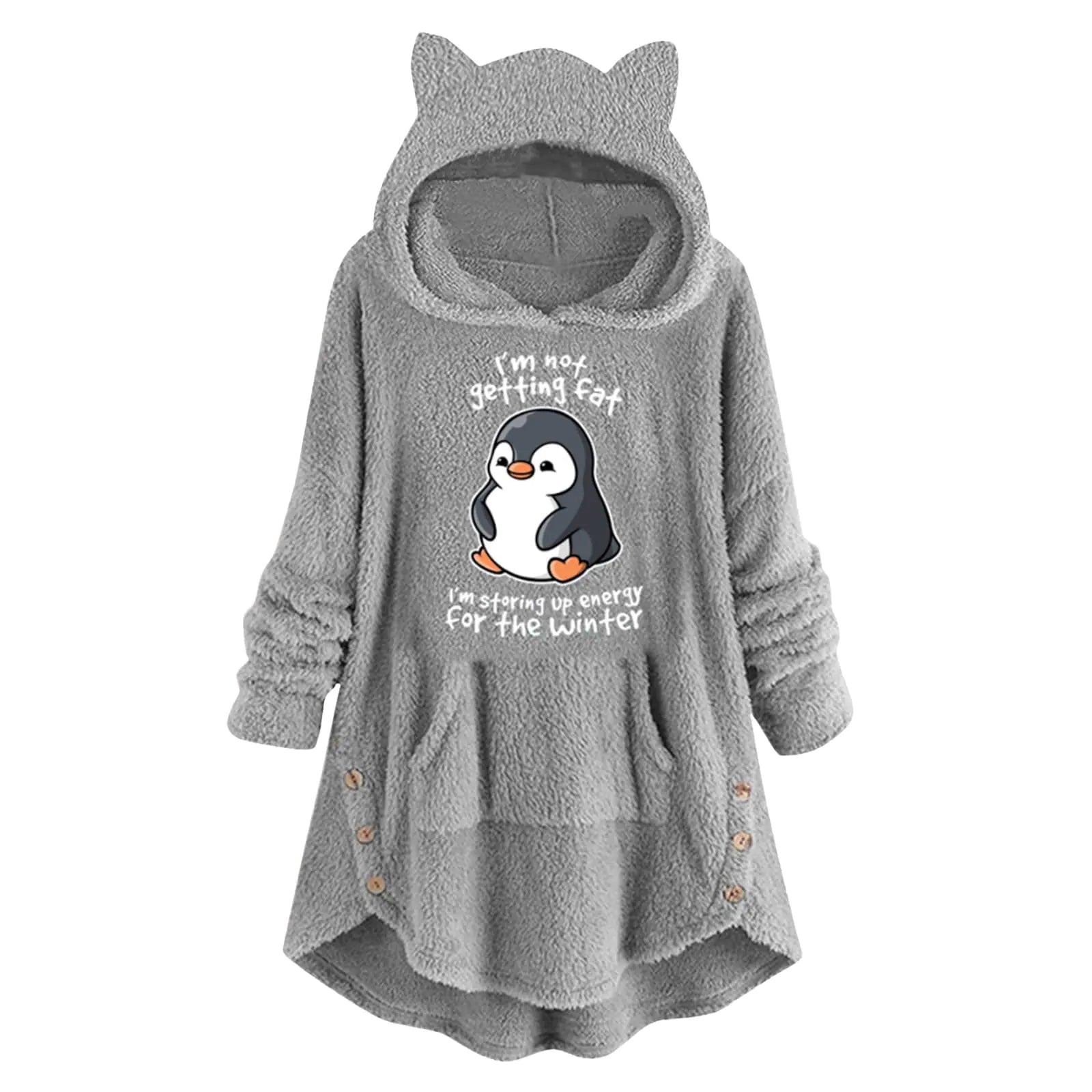 Snuggle up in style with the Grey Blanket Hoodie for Women. This cozy pullover combines comfort with a trendy 'I Do What I Want' cat print, perfect for those who love to make a statement while staying warm. Features include a loose, comfortable fit and a versatile zipper detail, making it an ideal choice for both indoor lounging and casual outings.
